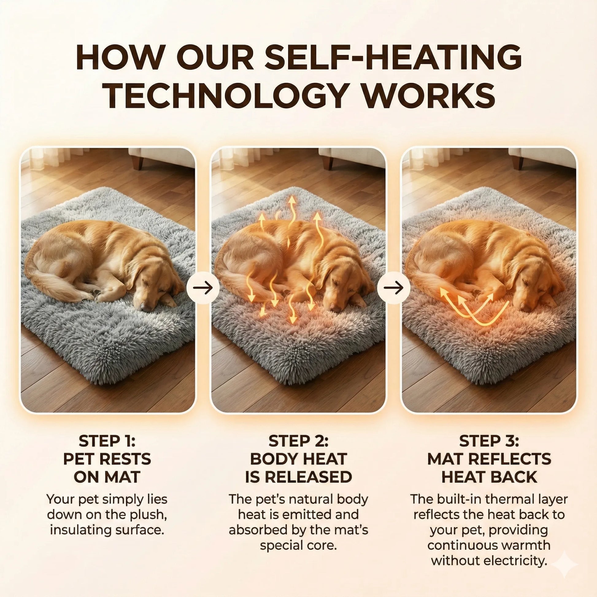 We ended the compromise. The Safe-Snuggle Sanctuary Mat captures the natural heat your pet radiates and gently reflects it back to them. It creates a pocket of warmth that mimics the feeling of snuggling against you—without a single plug, battery, or wire.